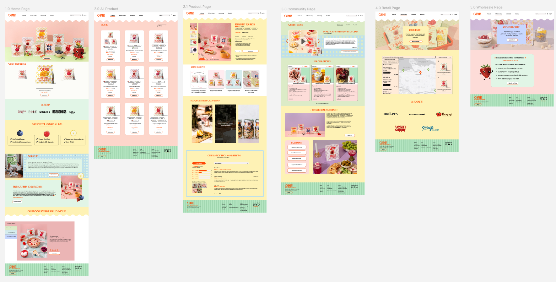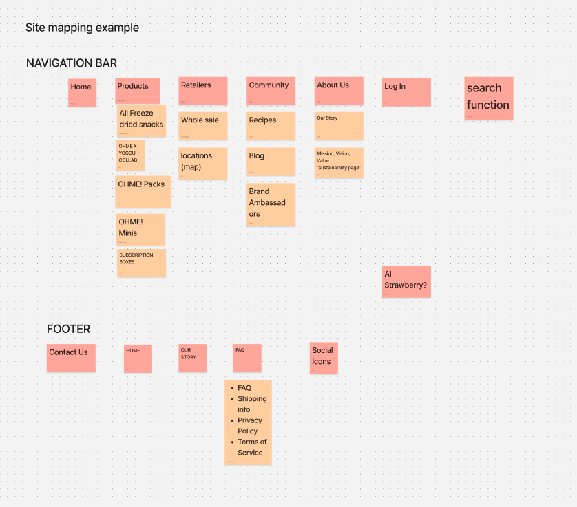 We began by pulling some visual mood boards to get aligned on fun visuals that are clean and effective. We then moved into mapping out a general user flow and sketching core wireframe sections. A mentor stepped in, suggesting to make the navigation more intuitive and highlighting the Yum Pack earlier in the product page.