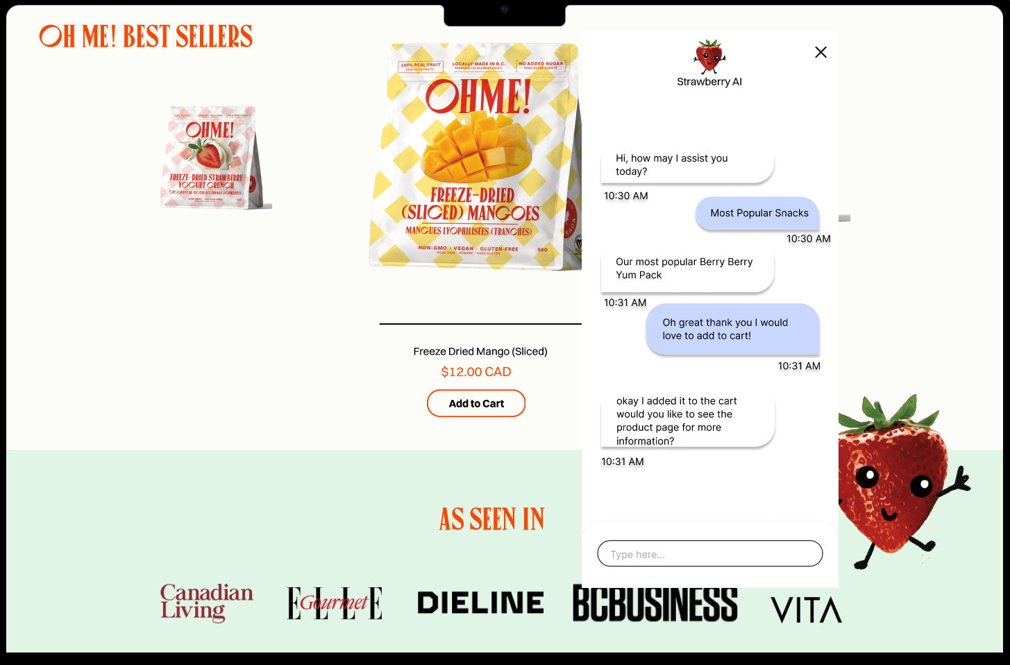 AI Chat-Bot: A quirky, on-brand method of assisting costumers while reducing clicks.