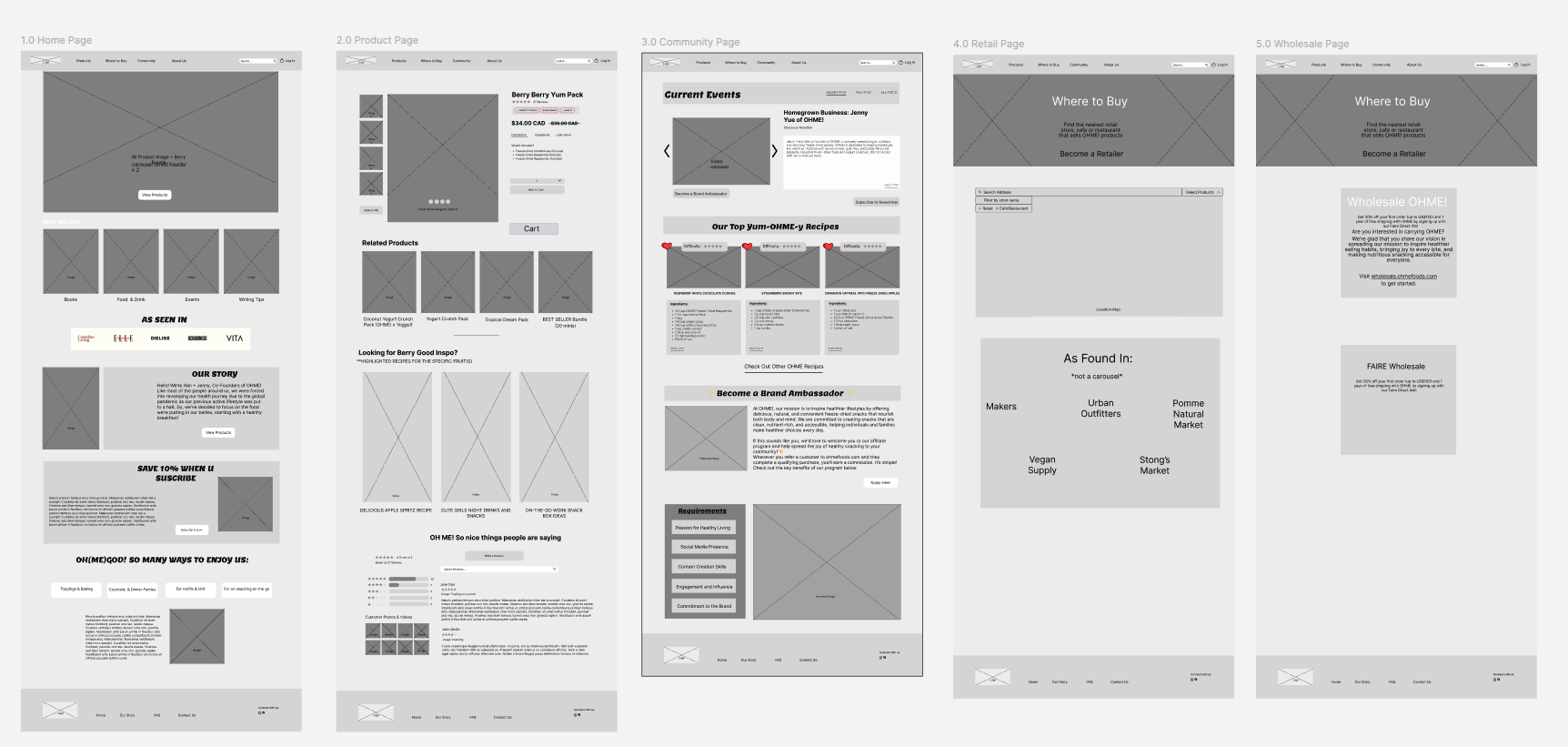 Brainstorming Process: Through our research and reviewing the client brief, we targeted our client call to address what makes OHME! different from competitors, the user’s key problems and how to keep the shopping process effortless and joyful. The biggest problem the client emphasized was to reduce the number of clicks to check-out.