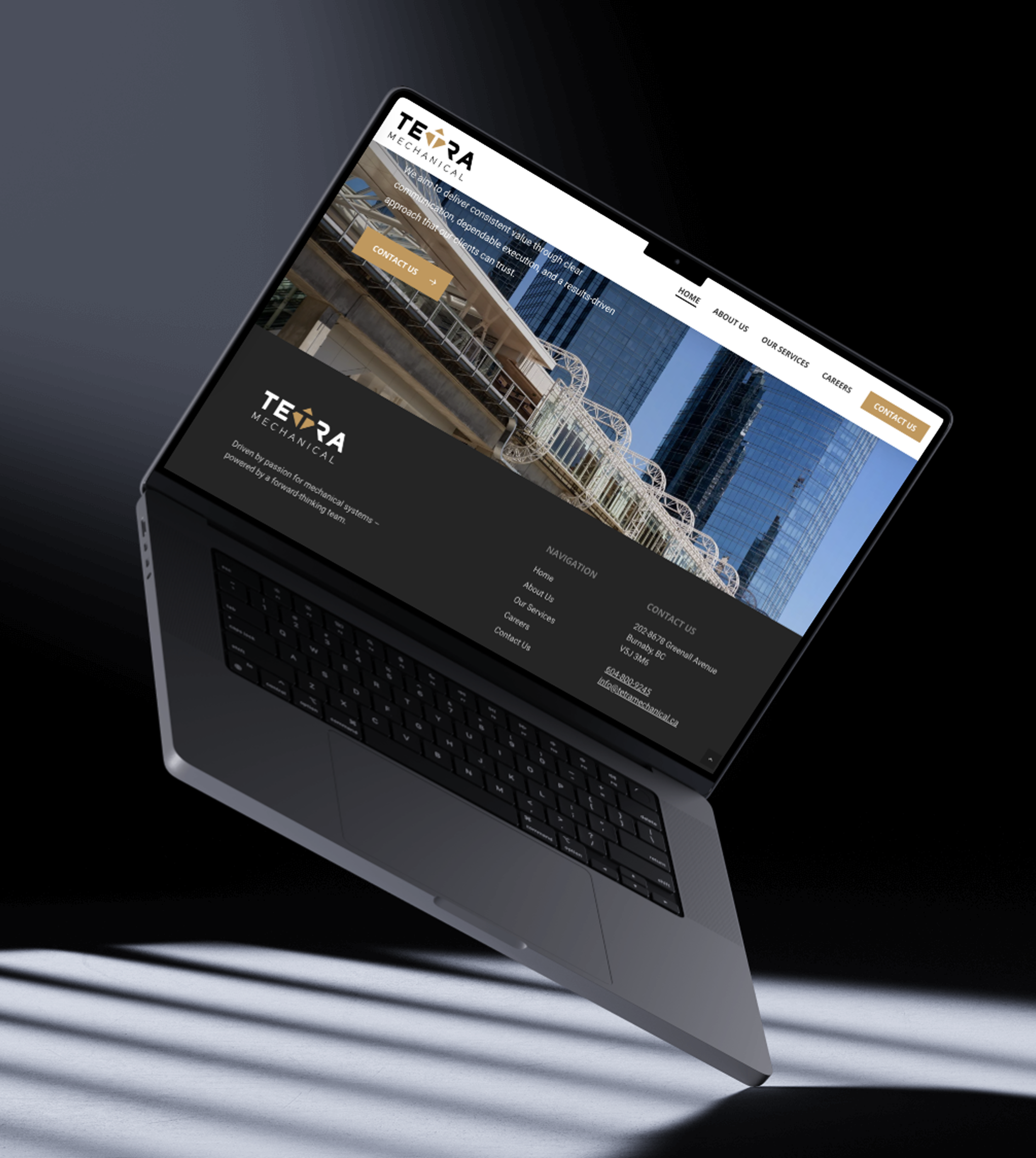 About: TETRA Mechanical is a mechanical contracting and construction firm based in Burnaby, BC. The logo design was inspired by geometric forms and angular forms. It was important for the client to have a strong and trustworthy identity that felt concise and clear. The logo is now live on their website and brand collateral which launched in 2025.
